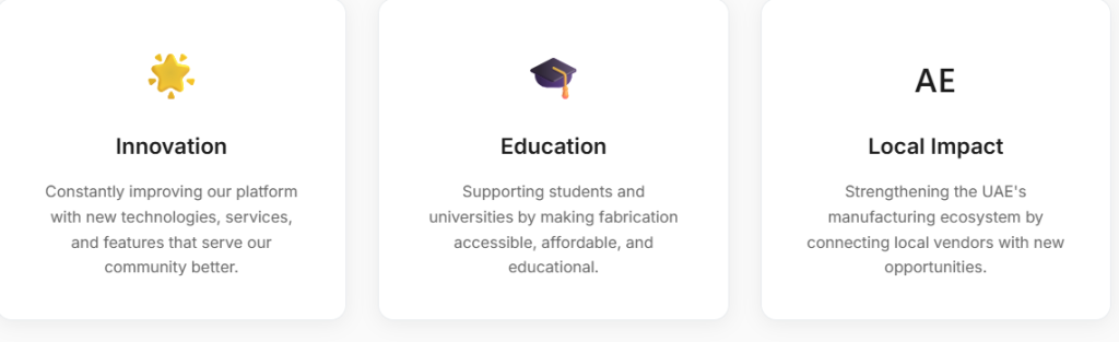 To eliminate the friction between having an idea and holding it in your hands. We're building the infrastructure that makes fabrication accessible, instant, and reliable for every student, maker, and innovator in the UAE.
