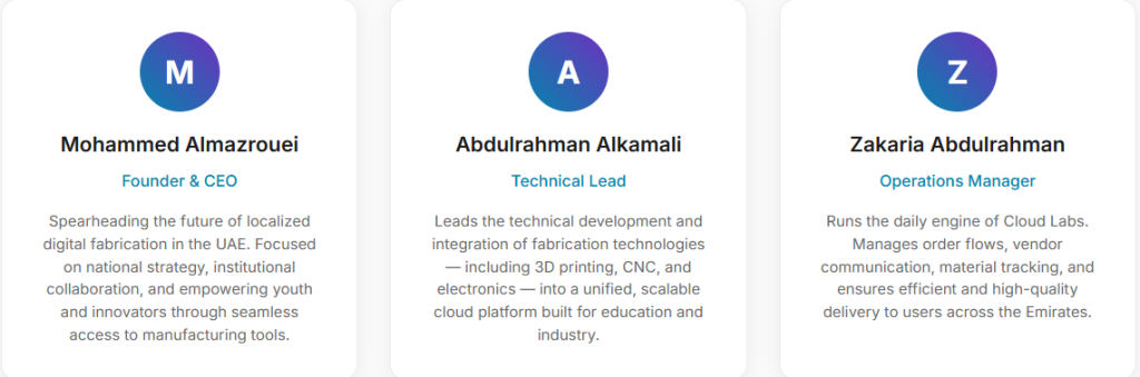 We're a passionate team of engineers, designers, and business minds united by the vision of making fabrication accessible to everyone in the UAE.